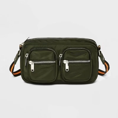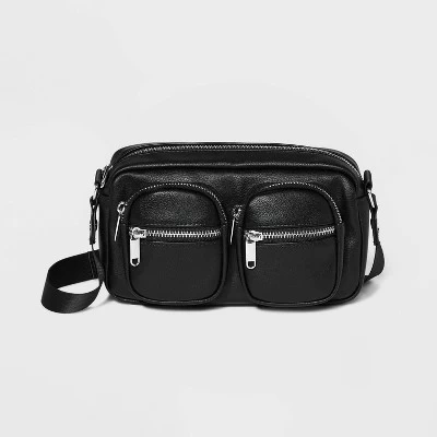 Monochrome fashion crossbody bag from Wild Fable⢠with gleaming metal hardware. Features an unstructured design with full lining, as well as a top zipper closure to keep the contents of the bag contained. Includes two front zip pockets that are topped with smaller zipped pockets, as well as an interior zip pocket. Matching, adjustable woven strap completes the design and makes carrying this small-profile bag stylishly comfortable.