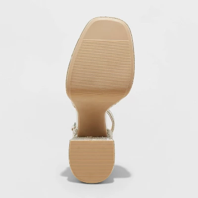 Platform pumps from Wild Fable⢠embellished with silver rhinestones throughout. Set on a flared four-inch heel and a textured outsole. Feature a contoured vamp with a round closed toe and covered heel with a wrap-around buckle strap.