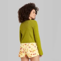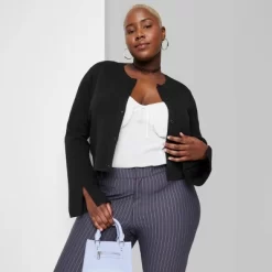 A Button-front cardigan from Wild Fable⢠in a solid color with fitted for comfort and style. Midweight Fabric with Ribbed Construction .The below-waist length and Crew Neckline add to the casual look.