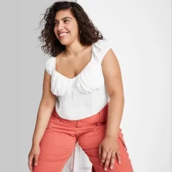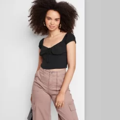 Slim-fit top from Wild Fable⢠with a sweetheart neckline with tie-front detail, a smocked back and cap sleeves. Designed with softly molded cups with shirring. Made of a lightweight fabric and cut to a below-waist length.