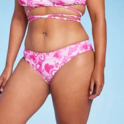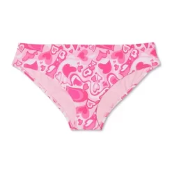 Cheeky bikini bottom from Wild Fable⢠adorned with an allover heart print in light and dark pink shades and white. Made of a soft fabric with added spandex and full lining. Tailored in a low-rise silhouette. Pull-on style completes the look with easy slip-on and take-off.