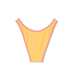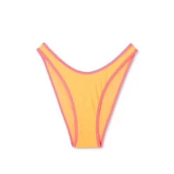 Extra-cheeky bikini bottom from Wild Fable⢠in a solid orange color with a contrasting pink trim. Tailored in a flattering low-rise, ultra-high-leg silhouette. Soft and stretchy fabric with elastic at leg openings for flexible movement in and out of the water. Pull-on style for easy slip-on and off.
