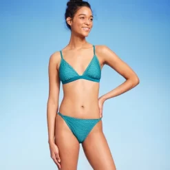 Teal green bikini bottom from Wild Fable⢠adorned with crochet overlay. Tailored in a low-rise, extra cheeky silhouette. Made from stretchy fabric with full opaque lining. Pull-on style for easy on and off.