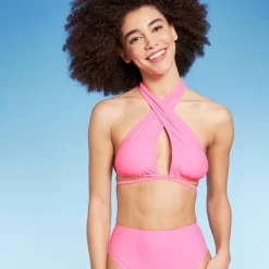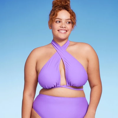 Multiway bikini top from Wild Fable⢠in a solid hue. Made of a soft, stretchy fabric and comfy lining with sewn-in cups. Halter behind-the-neck tie and string back tie fastening complete the look with a customizable fit.