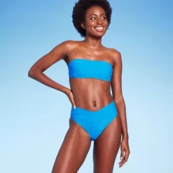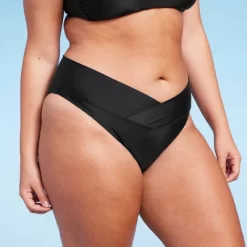 Solid-color bikini bottom from Wild Fable⢠with a crossover front. Made of a soft fabric with added spandex and full lining. Tailored with a mid-rise waist and a high-leg, cheeky silhouette. Pull-on style makes it easy to put on and take off.