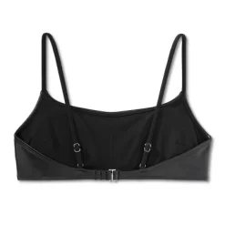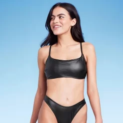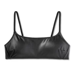 Bralette bikini top from Wild Fable⢠in a black faux-leather finish. Made of stretchy fabric and comes with removable cups for customizable coverage. Adjustable straps and back hook-and-loop fastener help you find a secure fit.
