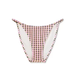 Cheeky bikini bottom from Wild Fable⢠with a pink, green and peach multi-check print. Tailored in a flattering low-rise, high-leg silhouette and made from stretch fabric with elastic at leg openings. Pull-on style for easy on and off.