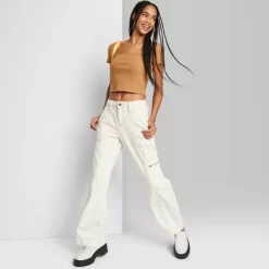 Baggy cargo jeans from Wild Fable⢠in a solid color. Made from a soft cotton blend for all-day comfort. Designed with a high-rise cut and full length. Multiple pockets including cargo pockets give you space for stashing small essentials.