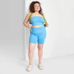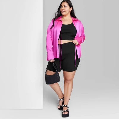 Bike shorts from Wild Fable⢠in a solid hue. Made from a soft fabric with spandex for stretchy comfort that moves with you. Tailored in a slim-fit silhouette with a wide full elastic waistband plus a crisscross wrap-front pattern.