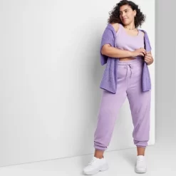 Solid-color joggers from Wild Fableā¢. Made of midweight, stretchy cotton-blend fabric for cozy comfort. Tailored in a relaxed fit with a taper-leg cut and elastic-cinched ankle cuffs. Sport a high-waisted silhouette with an elastic waistband and a front drawstring for a secure fit. Side pockets complete the look with functional flair.