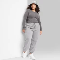 Neutral-color joggers from Wild Fableā¢. Made of midweight, stretchy cotton-blend fabric for comfortable wear. Tailored in a relaxed fit with a taper-leg cut and elastic-cinched ankle cuffs. Sport a high-waisted silhouette with an elastic waistband and a front drawstring for a secure fit. Side pockets complete the look with functional flair.