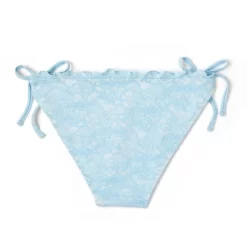 Cheeky bikini bottom from Wild Fable⢠with light-blue lace detailing and ruffle-trim waist. Made of a soft fabric with added spandex and full lining for comfortable wear in and out of the water. Tailored in a low-rise silhouette. Side string ties complete the look with a customizable fit.