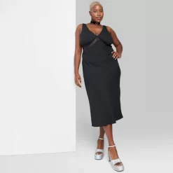 Lace-detail slip dress from Wild Fable⢠in a solid color. Made of lightweight recycled polyester fabric with partial lining for comfortable wear. Sleeveless style and back tie detail complete the stylish look.