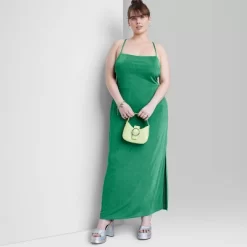 Sleeveless maxi dress from Wild Fable⢠in a solid hue. Designed with a square neckline with crisscrossing adjustable straps, a stylish lace-up back and a long side slit. Made with lightweight, stretchy 1×1 rib fabric and soft lining for comfortable wear that moves with you. Pullover style completes the look with easy wear.