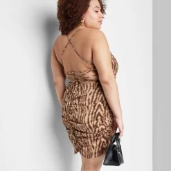 Sleeveless bodycon dress from Wild Fable⢠made of satin with soft lining. Designed with a square neckline, ruched accents on the front and back, and a mini length. Adjustable shoulder straps and a lace-up back with string ties complete the design.