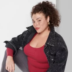 Long-sleeve tee from Wild Fable⢠in a solid hue. Designed in a fitted silhouette with a length that hits at the hip. Features a deep scoop neckline. Lightweight fabric with a hint of spandex offers all-day stretchy comfort.