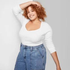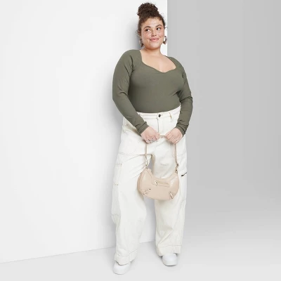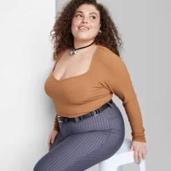 Long-sleeve seamless shirt from Wild Fable⢠tailored in a fitted silhouette with a length that hits below the waist. Made from heavyweight ribbed fabric with a hint of spandex for stretchy comfort. Designed with a sweetheart neckline in a solid hue.