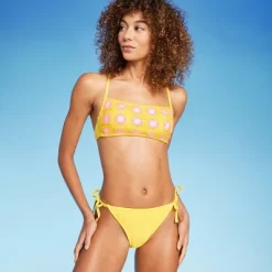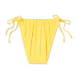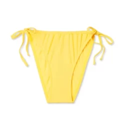 Solid-color cheeky bikini bottom from Wild Fableā¢. Made of a soft fabric with added spandex. Tailored in a low-rise silhouette with elastic at leg openings. Side string ties complete the look with a customizable fit.