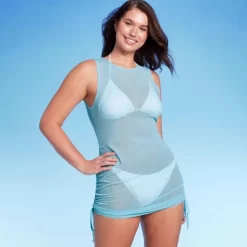 Women’s Mesh Drawstring Ruched Sleeveless Cover Up Dress – Wild Fableā„¢