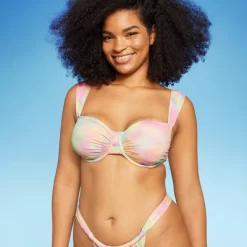Underwire bikini top from Wild Fable⢠with a mesh overlay and a seamless swirl print in soft colors. Made from soft fabric with four-way stretch and full lining for flexible comfort in and out of the water. Removable cups offer customizable coverage. Adjustable shoulder straps and a back strap with hook fastening complete the look and provide a secure fit.