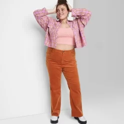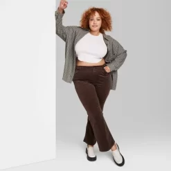 Corduroy flare pants from Wild Fable⢠in a solid hue. Made from cotton with spandex for stretchy comfort. Feature mid-rise cut and fly button and zipper closure. Side pockets provide space for small on-the-go essentials.