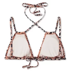 Animal-print triangle bralette bikini top from Wild Fableā¢. Sports double adjustable and convertible straps that offer multiple styling options. Soft and stretchy fabric offers comfort, and the back strap fastening provides a secure fit. Removable cups lend a customizable look.