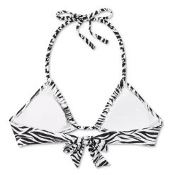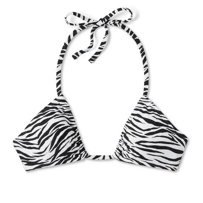 Zebra-print bralette bikini top from Wild Fable⢠in black and white. Sports a U-neckline and convertible straps that offer multiple styling options. Soft and stretchy fabric offers comfort, and the back strap fastening provides a secure fit. Removable cups lend a customizable look.