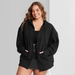 Oversized sweatshirt from Wild Fable⢠is perfect for wearing over any of your favorite tops. Made from midweight cotton-blend fabric in a solid hue. Hooded neck and front full-length zipper help keep you warm and cozy. Kangaroo pocket provides space for stashing your phone and other essentials.