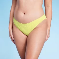 Solid-color cheeky bikini bottom from Wild Fable⢠with plisse texture. Made of a soft fabric with added spandex. Tailored in a low-rise, high-leg silhouette with elastic at leg openings. Pull-on style makes it easy to put on and take off.