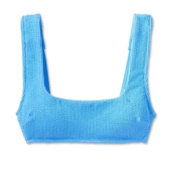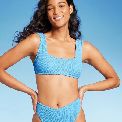 Square-neck bralette bikini top from Wild Fable⢠in a solid color with pucker texture. Made of a soft, stretchy fabric and comfy lining with removable cups. Crisscross back with string tie fastening completes the look with a customizable fit.