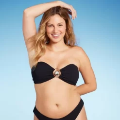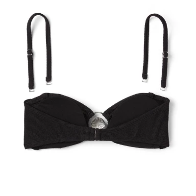 Pucker-textured bandeau bikini top from Wild Fable⢠in a solid hue. Made from soft fabric with four-way stretch and full lining for flexible comfort in and out of the water. Removable cups offer customizable coverage. Back strap with hook fastening provides a secure fit, and detachable shoulder straps let you change the look and adjust your support. A center-front shell charm completes the style and elevates the design.