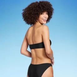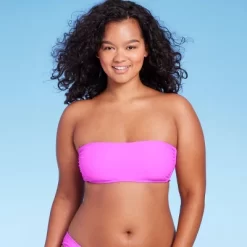Solid-color bandeau bikini top from Wild Fableā¢. Made with soft and stretchy fabric with partial lining to keep you comfortable. Pullover style makes top easy to slip on and take off.