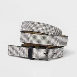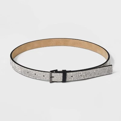 Black faux-leather belt from Wild Fable⢠covered with a layer of clear, sparkly rhinestones. Features 36-inch length with multiple holes for a customizable fit and a silver-finish buckle closure.