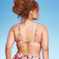 Triangle bikini top from Wild Fable⢠with ribbed texture. Soft and stretchy fabric construction with full lining. Adjustable shoulder straps and back hook closure provide a snug fit. Removable cups offer customizable coverage.