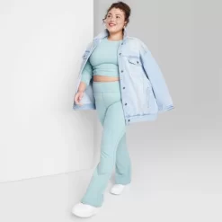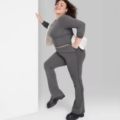 Ribbed knit leggings from Wild Fable⢠with flared legs. Made of a recycled polyester blend with a touch of spandex for comfort. Tailored in a casual fit with a high-rise silhouette and sports a pull-on waist for easy on/off.