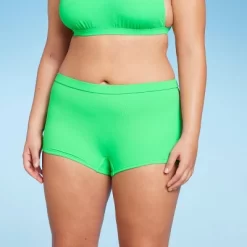 Boyshort bikini bottom from Wild Fable⢠with ribbed texture. Made of a soft fabric with added spandex and full lining. Tailored in a low-rise silhouette. Pull-on style completes the look with easy slip-on and take-off.