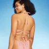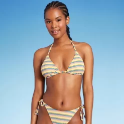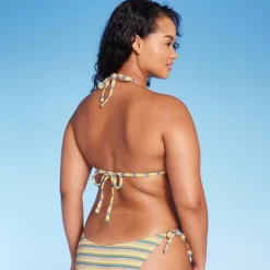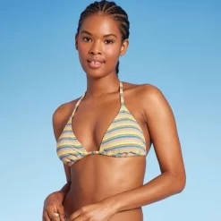 Triangle bikini top from Wild Fableā¢Ā with multicolor stripes. Made from soft fabric with spandex and full lining for stretchy comfort in and out of the water. Features ribbed construction with four-way stretch. Removable cups offer customizable coverage. Adjustable straps plus back and behind-neck ties provide a perfect stay-put fit.