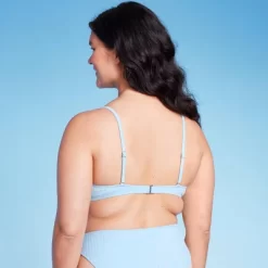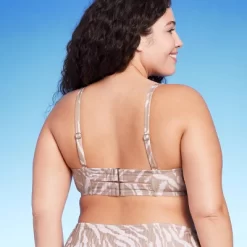 Bralette bikini top from Wild Fable⢠with ribbed texture. Made of soft, stretchy fabric with underwire and removable cups. Adjustable shoulder straps and a back strap with a hook fastener complete the look.