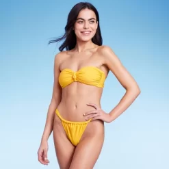 Yellow bikini bottom from Wild Fable⢠features a scarf side design. Made from soft and stretchy fabric and comes with full lining for comfort. The mid-rise, high-leg design in a cheeky to super cheeky silhouette completes the statement look.