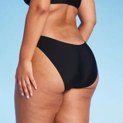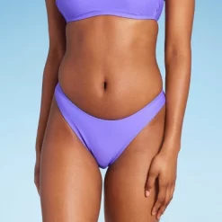 Scoop-front bikini bottom from Wild Fable⢠in a solid hue. Made from soft fabric with spandex and full lining for stretchy comfort in and out of the water. Cheeky cut with low rise and high leg for a flattering look.