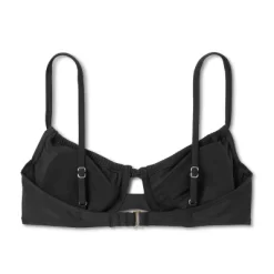 Solid-color shirred bikini top from Wild Fable⢠with tie-front keyhole detail. Made of soft, stretchy fabric with underwire and removable cups (sewn-in cups for sizes X-3X). Adjustable shoulder straps and a back strap with a hook fastener complete the look.