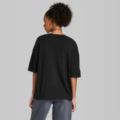 Relaxed-fit short-sleeve tee from Wild Fableā¢. Crafted from 100% cotton. Tailored in a relaxed silhouette with drop shoulders and the length hitting at the hip. Features a deep V-neckline in a solid hue.