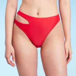 Side cut-out bikini bottom from Wild Fable⢠provides comfort and ventilation. Made of soft fabric with spandex and designed with a mid-rise waist and high-leg, cheeky silhouette. Pull-on style completes the look with effortless slip-on and take-off.