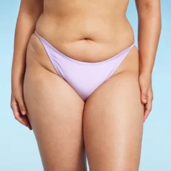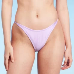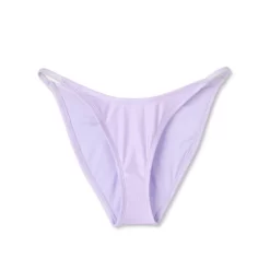 Cheeky bikini bottom from Wild Fable⢠in a shiny light purple color. Made from soft fabric with added spandex. Tailored in a mid-rise, high-leg silhouette with side tabs and recycled polyester lining.