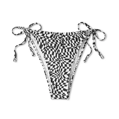 Low-rise cheeky bikini bottom from Wild Fable⢠features black-and-white checkered print. Made with soft and stretchy fabric with elastic at leg openings. Side ties with adjustable coverage provide a customizable fit.