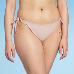 Cheeky bikini bottom from Wild Fable⢠with side tie details. Tailored in a low-rise, high-leg silhouette. Made from soft and stretchy fabric with full opaque lining for confident wear. Pull-on style for easy on and off.