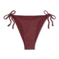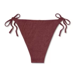 Brown bikini bottom from Wild Fable⢠is covered with gold-tone shimmery detailing. Made from soft and stretchy fabric with elastic at the leg openings. High leg, extra cheeky design in a low-rise silhouette and side ties makes it great to style with your favorite swim tops.