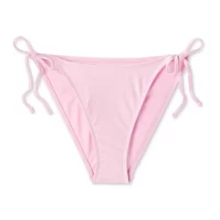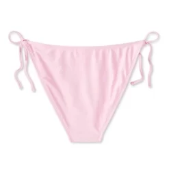 Scoop-front cheeky bikini bottom from Wild Fable⢠in a soft and shiny pink hue. Tailored in a low-rise, high-leg silhouette with side string ties. Made from soft and stretchy fabric with full lining for comfortable wear. Pull-on style for easy on and off.