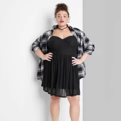 Mini skater dress from Wild Fable⢠features lace detailing for a textured look. Sleeveless design with sweetheart neckline. Soft, stretchy lightweight fabric provides all-day comfort, while the back zipper allows easy on and off.