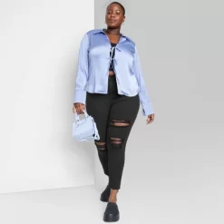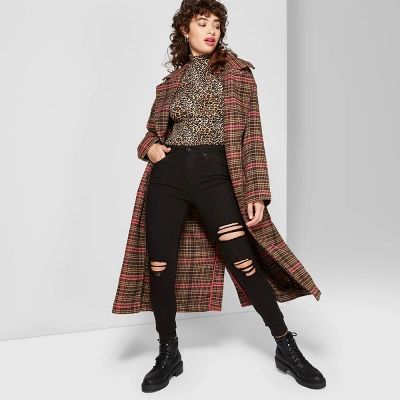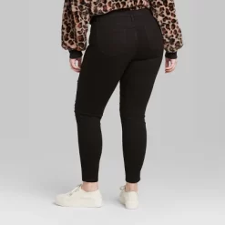 Black skinny jeans from Wild Fable⢠with a slim fit. Feature destructed details and an ankle-length design. Super high-rise cut and belt-loop waistband with fly button and zip fastening for a secure fit. Made from cotton with a hint of stretch for breathable, flexible wear that moves with you. Five handy pockets complete the look with functional flair.
